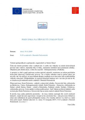 Senior fitnes z.s. s panem Ivanem Liškou pořádá letošní poslední cyklovýlet do Uhříněveského pivovaru. Plánovaná trasa: Horní Počernice – nádraží, svépravické rybníky, Xaverovský háj, cyklostezka na Běchovice, Vinice, Dolnopočernický rybník, Hostavice, cyklostezky na Dubeč, rybník Slatina, Dubeč – rybník u Rohožníku, Podleský rybník, Netluky, Uhříněves, pivovar. Zpět buď vlakem na Hlavní nádraží, nebo na kole přes Dolní Počernice a Xaverovský háj. Sraz v úterý 19.11.2019 v 9:15 u nádraží v Horních Počernicích, vítáni jsou všichni, včetně těch, kteří se přidruží po cestě nebo až v pivovaru.