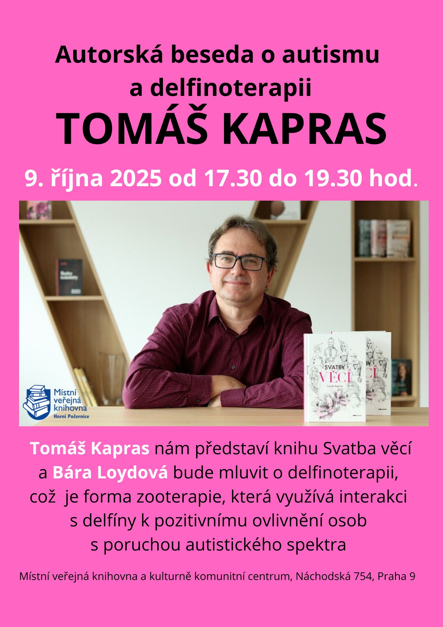 Představení knihy autora Tomáše Kaprase Svatba věcí. Kniha čtenáře přivádí do svatební agentury, kde mohou lidé uzavřít termínovaný sňatek s věcí k prohloubení vztahu se svou prací či koníčkem, jenž daná věc symbolizuje. S tímto netradičním nápadem přišla paní Dana, která svatební agenturu vlastní, aby vytrhla svého lehce autistického syna Robina z jeho světa, v němž se zajímal jen o věci, neboť je vnímá někdy velmi netradičně.