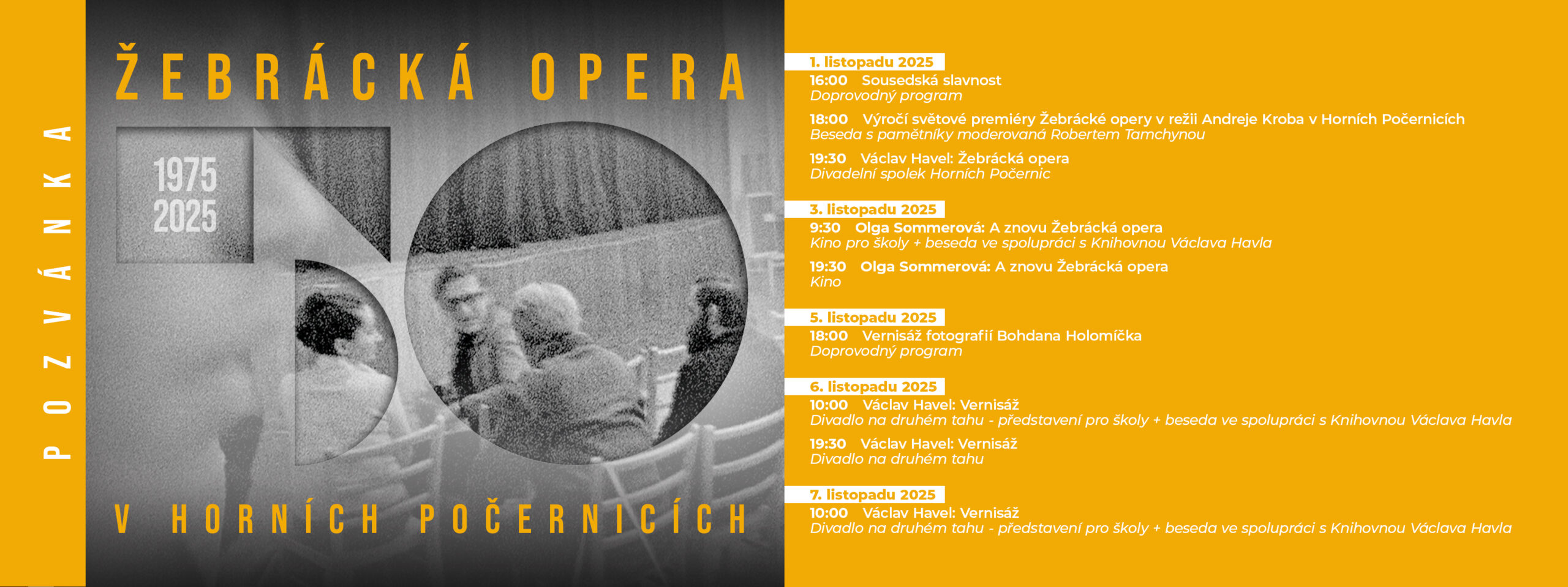Výročí světové premiéry Žebrácké opery Datum a čas: 01. 11. 2025 18:00 - 18:00 Místo: Divadlo Horní Počernice Kategorie: Beseda Beseda s pamětníky moderovaná Robertem Tamchynou. Loading Map.... Divadlo Horní PočerniceVotuzská 379/11 - Praha, Horní PočerniceUdálosti 50.11635 14.621910699999944 1.11.2025 | Karolína Prokůpková Navigace pro příspěvek « Předchozí událostDalší událost »