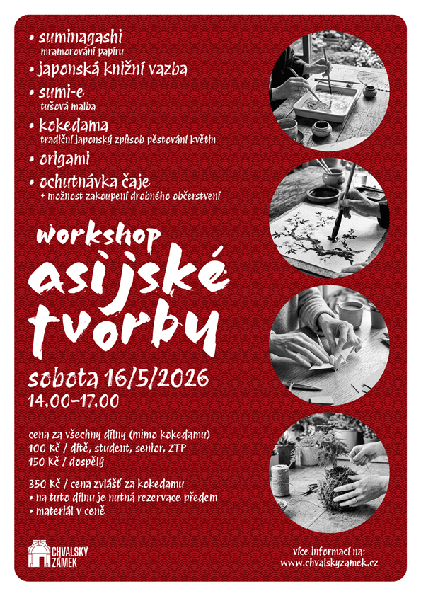 Návštěvníci se seznámí s různorodými technikami asijské, zejména pak japonské umělecké tvorby. Budou mít možnost poznat tradiční techniku suminagashi – mramorování papíru, japonskou knižní vazbu, mohou si složit vlastní dekoraci origami nebo si třeba domů přinést vlastnoručně vyrobenou mechovou kouli – kokedamu. Děti si zřejmě nejvíce užijí tvorbu sakurových květů různými technikami a materiály. V průběhu workshopu si můžete užít i drobnou ochutnávku čaje nebo si zakoupit malé občerstvení.