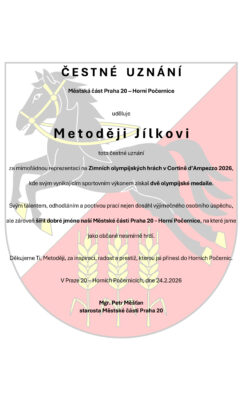„Jsem velmi poctěn, že si Metoděj ve svém nabitém programu udělal čas a dorazil na krátkou návštěvu k nám na radnici. Upřímně jsem mu při této příležitosti poblahopřál k úžasnému úspěchu, kterým korunoval léta dřiny na trénincích i v závodech. Metoděj je teprve na začátku sportovní kariéry a věřím, že ještě spoustu triumfů přidá, nicméně už teď je sportovní legendou a jedním z nejslavnějších občanů našich Horních Počernic,“ řekl starosta Petr Měšťan.